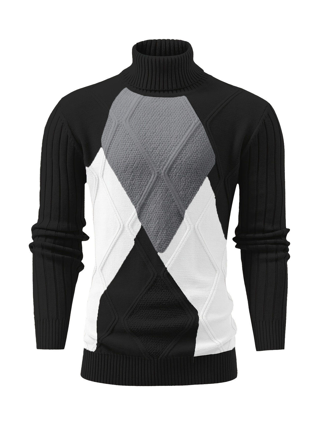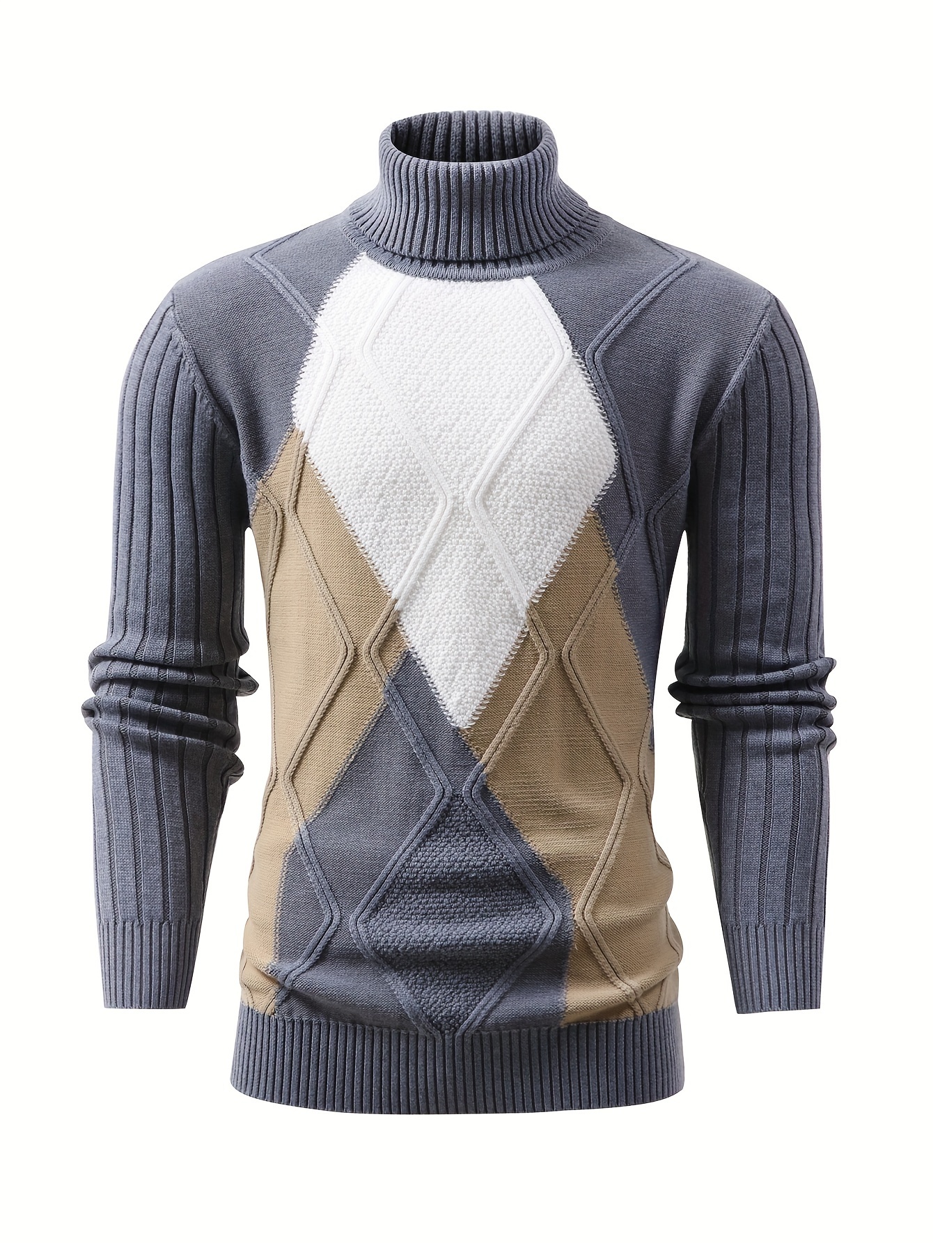 Geometric Chic Sweater - Soft 100% Polyester High Neck Long Sleeve Pullover with Asymmetrical Design, High Stretch Knit Fabric, Perfect for Fall/Winter Casual Wear - 1pc Men's Fashion Essential.
